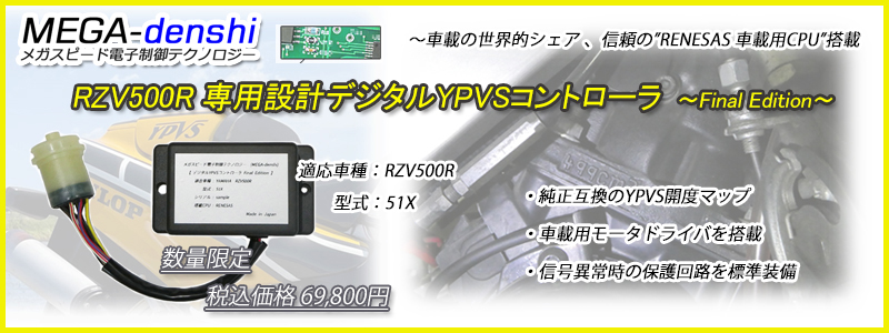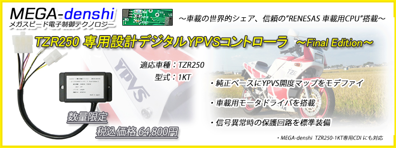 YPVSコントローラはエンジン回転に応じて排気バルブの開度をコントロールする装置です。MEGA-denshi では絶版になった純正YPVSコントローラにかわって、より高性能なYPVSコントローラの開発・販売を目指しています。