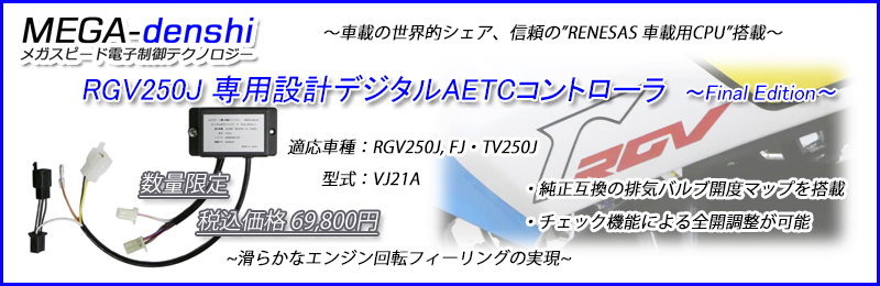 AETCコントローラはエンジン回転数に応じて排気バルブの開度をコントロールする装置です。MEGA-denshi では絶版になった純正AETCコントローラにかわって、より高性能なAETCコントローラの開発・販売を目指しています。