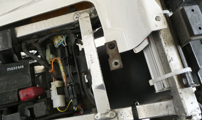 御社ご提示の取り付け例もございますが、やはり純正CDIの取り付け位置が最も安定していると感じましたので、どのように取り付けるのが良いかだいぶ時間をかけて考えました。苦労したのが、純正CDIと御社CDIとでは厚さが異なるため、フレーム等との接触を回避するための寸法決めと部材加工でした。結果としてなんとか収めることができたと思います。固定に使っている金具はアルミで、CDI本体から熱が伝導しやすいようにして放熱を兼ねています。