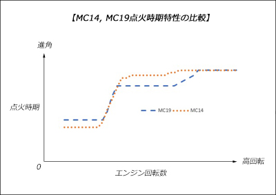 ![]() 手順1:純正イグナイタを取り外し、弊社イグナイタ側からの白の6極カプラ(メス)を左図の様に取り付けます。次に白の4極カプラ(メス)を右図の様に接続します。 ![]() 手順2:図の様にイグナイタ本体をシートレールに300mmの結束バンドで固定、カプラまでの配線をクランプして取り付け完了です。 ※ イグナイタの固定については、これでなければダメというものではないのでユーザー様でご自由に設置して下さい。 [注意点] ・エンジン回転のレブリミッターはあえてプログラムしておりませんので、回し過ぎにはご注意下さい。 ・開発時はレッドゾーンに入る直前までエンジンが吹け上がることを確認していますが、それ以上の回転域の動作は保証外となります。 ・誤作動防止の為、NGK抵抗入りプラグをご使用下さい。その他のプラグでは動作未確認となります。 ・純正イグニションコイルおよびハイテンションコード以外での動作は未確認の為、社外の強化コイルやホットワイヤー等は非適合となります。 ⇒ 誤作動した場合、内部ICが損傷し、イグナイタが故障するおそれがあります。 ・バイクのレギュレータが故障すると、過充電や過電圧等によりイグナイタ内部のIC等が損傷し、イグナイタ本体が故障するおそれがあります。 ⇒ 過充電等による破損は、保証の対象外となります。部品が古い場合は新しく交換しておくことを推奨します。 ・本イグナイタを分解した場合、保証の対象外となります。 ・バッテリ充電器を使用する場合は、イグナイタのカプラの接続をすべて外した状態で行うか、バッテリを車両から取り外してバッテリ単体で充電を行って下さい。 ⇒ イグナイタとバッテリがが車両に接続された状態でバッテリ充電器を使用すると、イグナイタが破損する可能性があります。 【警告】下図で示すイグナイタ側面に2か所ある六角ネジは絶対に緩めないで下さい。緩めた場合はイグナイタが破損します。 ![]() [開発について] CBR250FOURはCBR250の4気筒シリーズの初期モデルであり、高回転エンジンの先駆けとなりました。レッドゾーンも17,000rpmという超高回転の設定であり、それに見合った進角をともなう点火タイミング、ドエルタイムが採用されています。 MEGA-denshi ではすでにCBR250RJ, RK (MC19型) 専用のイグナイタを開発していますが、MC14型のイグナイタの開発にあたり、MC19型との違い徹底的に検証し、MC14型はMC14型のイグナイタ、MC19型はMC19型のイグナイタが必要であることを改めて認識しました。 ![]() 左図はMC14型(以下MC14) とMC19型 (以下MC19) の点火タイミングの違いを簡易的に同軸で示したものです。まずアイドリング時の点火タイミングが異なり、MC14はBTDC20°に対し、MC19はBTDC23°となっています。また、中回転域においてはMC14の方が進角するタイミングが早く、MC19に対して進角度が大きくなっています。最大進角度はMC14, MC19とほぼ同じBTDC40°超えのところで収束しているので、おそらくこの辺りが安全かつ限界ではないのかと推測されます。それぞれ最高出力の発生回転数が違うことから、それぞれに見合った点火タイミングになっており、各々が専用のマップをもったイグナイタを使用しないと最高のパフォーマンスは出せないという結論に至ります。 特にMC14のイグナイタをMC19に流用するといった悪手を行うと、基準が3°ずれている事から全体が底上げされ、10,000rpm以上では進角し過ぎになり、エンジンを損傷させる危険性があります。また逆にMC19用のイグナイタをMC14に使うと全域でパワー不足になり、特に中回転域がもたつく恐れがあります。これらのことから、MEGA-denshi ではMC14型専用にイグナイタを開発しました。MC14にはMC14用の、MC19にはMC19用のイグナイタをお使いいただければと思います。 本イグナイタに搭載しているのは、日本の誇るルネサステクノロジ社の車載用CPUです。日本車のインジェクションモデルの純正ECU内部にもRENESASのCPUが使われていることからも、信頼性のある日本の半導体企業を MEGA-denshi は支持します。 CBR250FOURの販売時期が1986年頃ですから、すでに40年以上の年月が経過しています。当然イグナイタも劣化しています。純正互換の新品のデジタル進角イグナイタを供給させていただくことにより、ユーザー様には今後もずっと安心して維持し続けられるようお役に立てれば幸いです。 |