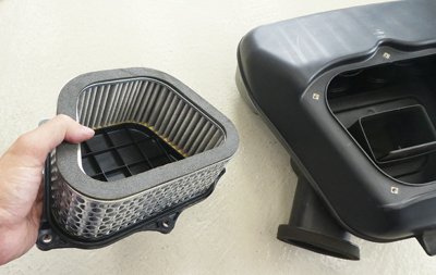 プラグを交換する為にエアクリーナボックスを取り外す必要がある為、同時にエレメントの状態を点検した様子です。
