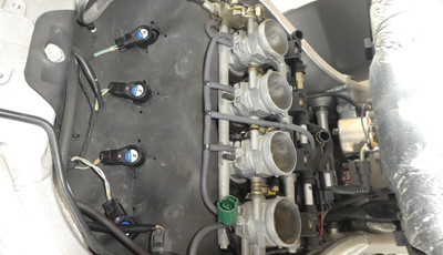 非常にクリーンで虫一匹挟まっていませんでした。ハヤブサの様なフロントに吸気取り入れ口が付いている車両はハチ等の虫が浸入している場合が多く、ここも注意しておきたいところです。
