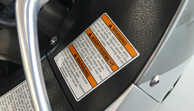 | 少し浮いていたコーションラベルを新品に交換した様子です。ラベルが新しくなると引き締まります。 |