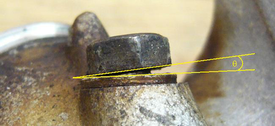 角度θだけ面に対して傾いてねじ込まれていました。