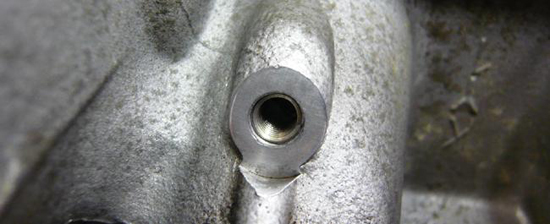 エンジンを降ろしヘッドを取り外した時に発見したものなので、良好な作業条件でヘリサート加工を行うことができました。