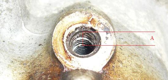 図2はねじ山が破損している様子です。Aの部分が破損しているねじ溝です。