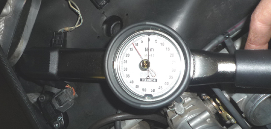 他の気筒のスパークプラグの締め付け状態を検査用トルクレンチにて確認点検しました.